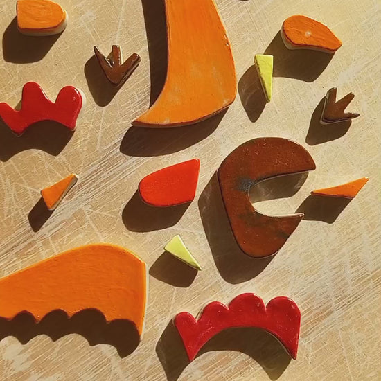 Puzzle in gres intagliato e decorato a mano.